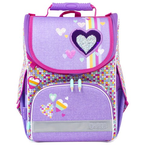Идеальный ранец для первоклассников. Ранец состоит из одного просторного отделения, 1 переднего и 2 боковых карманов. Анатомически правильная вентилируемая спинка и легкая конструкция правильно распределяют нагрузку.