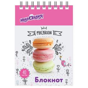 Блокнот формата А7 на евроспирали содержит 40 листов с линовкой в клетку. Имеет верхнее расположение переплета. Обложка выполнена из мелованного картона плотностью 200 г/