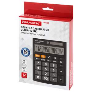 Настольный калькулятор BRAUBERG ULTRA-12-BK. Большой яркий дисплей, устойчивый корпус с прорезиненными ножками и крупная клавиатура с цветной дифференциацией позволяют работать эффективнее с максимальным комфортом.