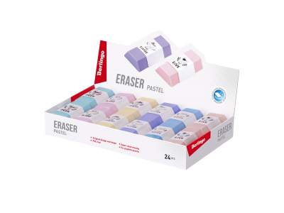 Ластик выполнен из высококачественной термопластичной резины. Каждый ластик имеет штрихкод. Упаковка в дисплей. 6 цветов ассорти.