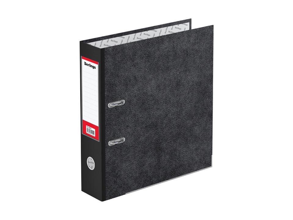 Папка-регистратор Berlingo серии Hyper формата А4 идеальна для создания архива. Папка размером 320*290*80 мм изготовлена из жёсткого износостойкого картона с односторонним покрытием из специальной ламинированной бумаги «под мрамор» и чёрным корешком в цвет общего дизайна. Папка эффективно экономит офисное пространство. Ширина корешка составляет 80 мм. Конструкция разработана с учётом всех особенностей эксплуатации. Выгодно отличается надёжным арочным механизмом из качественного металла, наличием кармана на корешке со сменным информационным ярлыком для маркировки, полем для записей на внутренней стороне обложки, отверстием для удобного снятия папки с полки. Для повышения износостойкости нижние грани укреплены металлическим кантом.