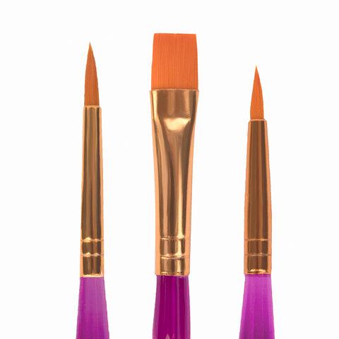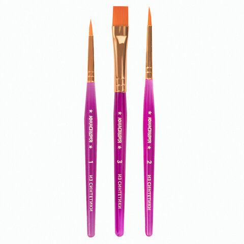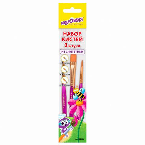 Набор из трех кистей разного размера ЮНЛАНДИЯ позволяет начинающим художникам решать любые творческие задачи в детском саду, школе и дома.