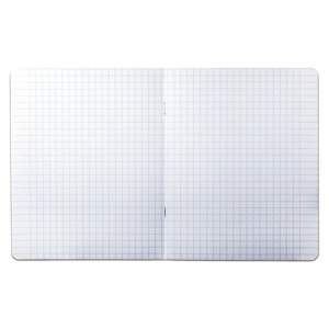 Внутренний блок плотностью 65 г/м2 из офсетной бумаги содержит 12 листов. Линовка — крупная клетка с полями. Обложка изготовлена из импортного мелованного картона. Скрепка надежно скрепляет листы между собой.