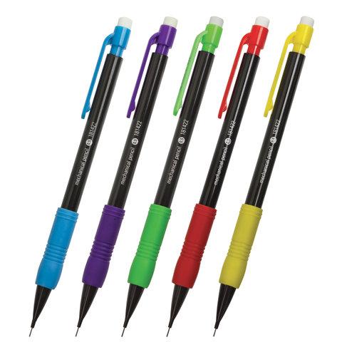 Механический карандаш STAFF с черным корпусом и деталями ярких цветов ассорти.