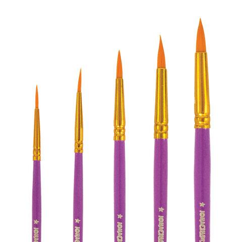 Кисти из высококачественного синтетического ворса отлично впитывают и отдают краску, хорошо держат форму, долговечны и надежны. Благодаря кистям №1, 2 и 3 ребенку будет комфортно прорисовывать мелкие детали. Кисти № 4 и 5 и позволят делать более крупные мазки и линии. Рукоятку кисти удобно держать в руке.