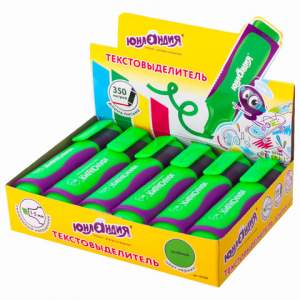 Текстовыделитель зеленого цвета имеет плоскую форму корпуса, диаметр которого 25 мм. Резиновые вставки обеспечивают эргономичную зону захвата, предотвращая скольжение в процессе использования. Скошенный наконечник имеет толщину линии письма от 1 до 5 мм, что обеспечивает удобство при работе с текстом, напечатанным мелким шрифтом, или таблицами. Благодаря особой водной основе чернил текстовыделитель не высыхает без колпачка в течение 8 часов. Текстовыделитель обладает экономным расходом чернил, при этом длина линии письма достигает 350 метров. Чернила быстро впитываются и тем самым предотвращают размазывание. Цвет клипа и корпуса текстовыделителя соответствует цвету чернил.