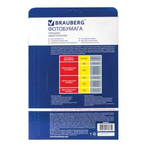 Глянцевая односторонняя фотобумага BRAUBERG подходит для всех типов струйных принтеров. Незаменима при распечатке бизнес-графики, презентаций, флаерсов.