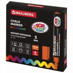 Стираемый меловой маркер BRAUBERG «POP-ART» — оригинальный инструмент для оформления различных зон помещений. Идеален для использования на школьных занятиях и детского творчества.