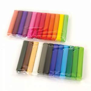 В него входит 24 бруска разных цветов: темно-зеленый, коричневый, кремовый, белый, серый, черный, темно-синий, синий, голубой, зеленый, светло-зеленый, салатовый, неоновый зеленый, лососевый, ягодный, светло-фиолетовый, фиолетовый, нежно-розовый, розовый, красный, коралловый, морковный, оранжевый, желтый. Масса набора — 500 г.