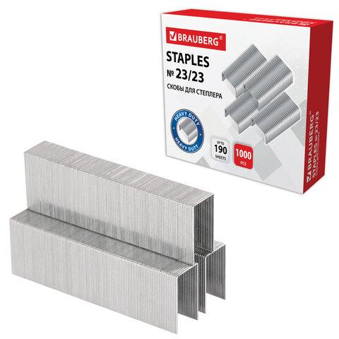 Заточенные сверхпрочные стальные скобы серебристого цвета для степлера BRAUBERG размером № 23/
