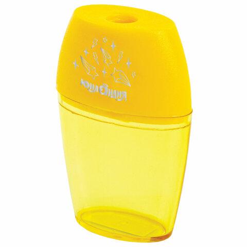 Корпус выполнен из пластика. Острое лезвие обеспечивает высококачественную и точную заточку. Карандаш до 8 мм затачивается легко и аккуратно, а опилки остаются в специальном контейнере. Компактные размеры (62х41х21 мм) позволят поместить точилку в пенал, а благодаря интересному дизайну она не затеряется на парте или столе среди других принадлежностей.