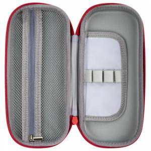 Пенал прямоугольной формы с одним вместительным отделением и откидной планкой с органайзером, застегивается на молнию с брендированным бегунком. Размер — 22х10х5 см. Поставляется в прозрачной упаковке с европодвесом.