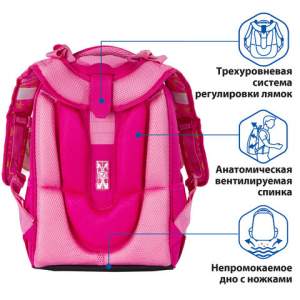 Удобная мягкая вентилируемая спинка с воздушными спонжевыми панелями разработана с учетом анатомических особенностей детей младшего школьного возраста. При правильной регулировке ранец будет практически не ощущаться на плечах и не будет доставлять дискомфорт при носке. В процессе эксплуатации равномерное распределение нагрузки позволит сохранить правильную осанку!