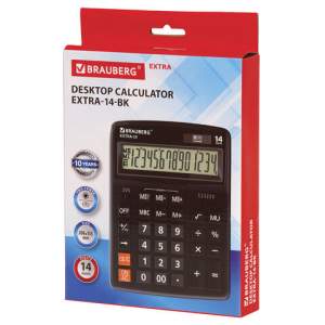 Настольный калькулятор BRAUBERG EXTRA-14-BK. Большой дисплей с увеличенным углом обзора, устойчивый корпус и клавиатура с цветной дифференциацией для эффективной работы с максимальным комфортом.
