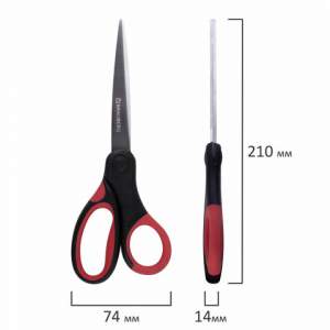 Это надежный инструмент, отличающийся хорошей двухсторонней заточкой лезвий и оригинальным дизайном в красно-черном исполнении. Размер 210 мм. За счет наличия прорезиненных ручек снижается давление на кисть руки, поэтому даже долгая работа с ножницами становится легкой и непринужденной. Поставляется в блистере.