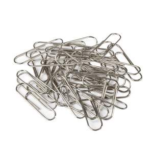 Скрепки изготовлены из стали, имеют классическую овальную форму и блестящее никелевое покрытие. Длина скрепки составляет 28 мм. Не окисляются и не повреждают документы. 100 штук в картонной коробке.