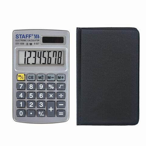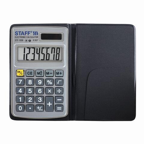 Прочный и надёжный карманный калькулятор STAFF STF-1008 поможет выполнить базовые вычисления везде, где Вам понадобится. Калькулятор легко помещается в карман и удобно лежит в руке.