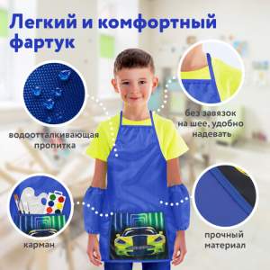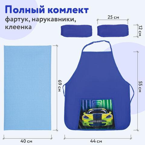 Набор для уроков труда ЮНЛАНДИЯ «Neon car» — незаменимая вещь для защиты одежды и рабочей поверхности на уроках труда и занятиях творчеством. В набор входит: фартук с нарукавниками и клеёнка. Предусмотрен для многоразового использования.
