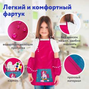 Набор для уроков труда ЮНЛАНДИЯ «Rainbow unicorn» — незаменимая вещь для защиты одежды и рабочей поверхности на уроках труда и занятиях творчеством. В набор входит: фартук с нарукавниками и клеёнка. Предусмотрен для многоразового использования.