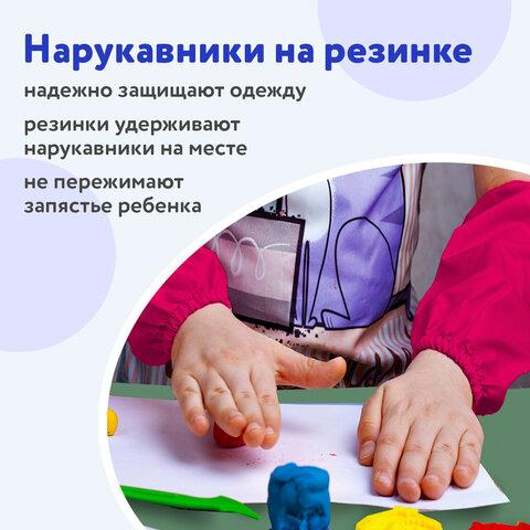 Выполнен из плотного полиэстера с водоотталкивающей пропиткой, который защитит одежду от загрязнений в процессе занятий. В наборе имеется клеенка для защиты рабочей поверхности. Материал клеенки — ПВХ.