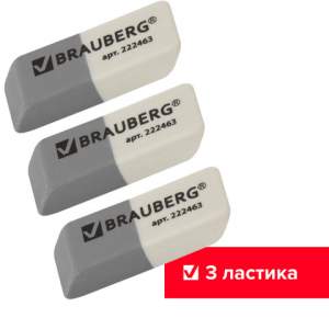 Набор из трех ластиков BRAUBERG, предназначенных для удаления надписей, сделанных чернографитными карандашами.