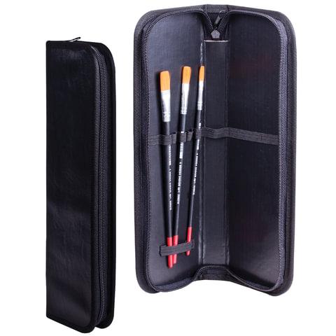 Стильный пенал, выполненный из искусственной кожи, предназначен для хранения и транспортировки кистей. Кисти фиксируются резинкой на местах крепления.