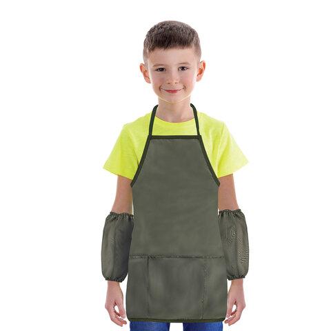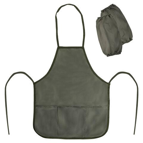 Выполнен из плотного полиэстера, имеет удобные завязки, которые позволяют зафиксировать фартук на ребенке. Благодаря резинке нарукавники надежно держатся на руках. Размер нарукавников - 25х12 см.