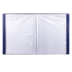 Для маркировки содержимого на корешок наклеена этикетка. Папка изготовлена из пластика толщиной 0,5 мм с антибликовой фактурой, а ширина корешка составляет 25 мм. Содержит 40 вкладышей, позволяющих хранить документы формата А4 и обеспечивающих их надежную защиту от попадания влаги, пыли и прочих повреждений.