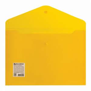 Папка-конверт с гладкой фактурой формата А4 изготовлена из плотного пластика желтого цвета толщиной 200 мкм. Закрывается на защелку-кнопку, что делает удобным частое использование и обеспечивает быстрый доступ к ее содержимому. Папка способна вместить до 100 листов стандартной плотности.