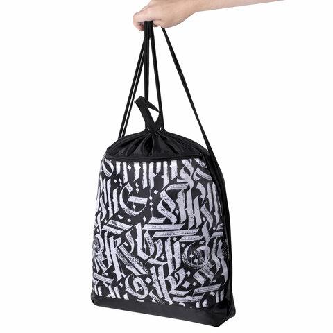 Мешок увеличенного размера 49х41 см имеет одно вместительное отделение, которое затягивается шнурками, а также дополнительное отделение на молнии спереди. На задней стенке основного отделения имеется сеточка для вентиляции содержимого. Большой размер мешка и два отделения позволяют использовать его для хранения высокой зимней обуви, а также для переноски и хранения физкультурной формы и вещей для факультативных занятий.