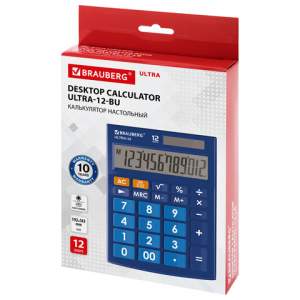 Настольный калькулятор BRAUBERG ULTRA-12-BU. Большой яркий дисплей, устойчивый корпус с прорезиненными ножками и крупная клавиатура с цветной дифференциацией позволяют работать эффективнее с максимальным комфортом.