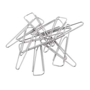 Скрепки изготовлены из стали, имеют треугольную форму и цинковое покрытие. Длина скрепки составляет 25 мм. Не окисляются и не повреждают документы. 100 штук в картонной коробке.