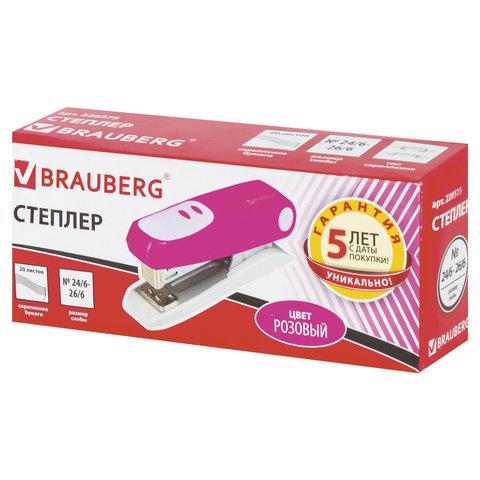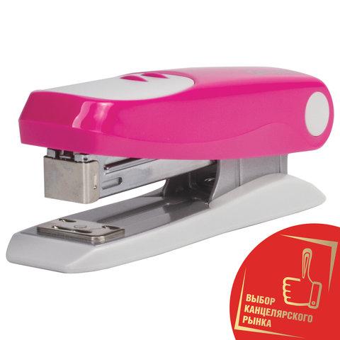 Настольный степлер BRAUBERG «Germanium» в пластиковом корпусе розового цвета с металлическим механизмом cпособен скрепить до 20 листов. Подходящий размер скоб № 24/