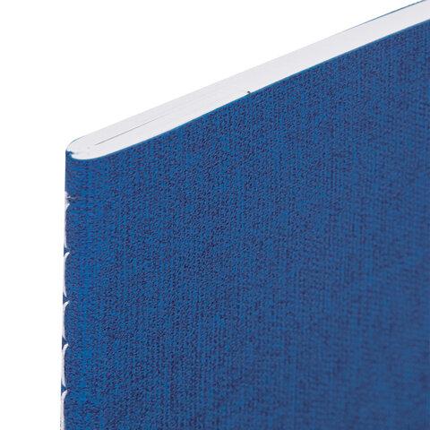 Общая тетрадь формата А5 (147х210 мм) содержит 48 листов с линовкой в клетку. Сшивка плотно соединяет листы. Обложка изготовлена из высококачественного и износоустойчивого материала — экокожи с текстурой под «рогожку» синего цвета, что придает тетради изысканный и неповторимый стиль. Внутренний блок — белая офсетная бумага плотностью 70 г/