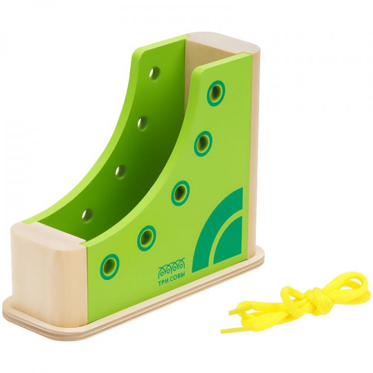 Игрушка «ТРИ СОВЫ» представляет собой деревянную кеду с отверстиями и шнурком. Задача ребенка – зашнуровать кеду, используя отверстия и шнурок. Игрушка развивает фантазию, тренирует движения кисти и пальцев, стимулируя мелкую моторику. А также прекрасно развивают сенсомоторную координацию, глазомер, внимание, усидчивость, готовят руку к письму.