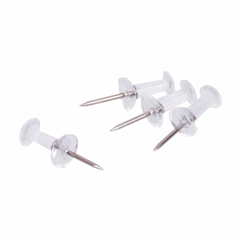 Силовые кнопки OfficeSpace с прозрачными шляпками предназначены для создания отметок на картах, графиках и для крепления информации к пробковым доскам. Длина иглы – 11 мм. Упакованы по 50 штук в картонную коробку, размер кнопки 24*5 мм.