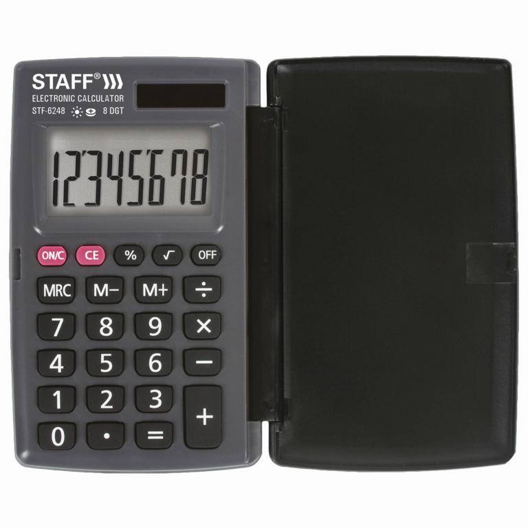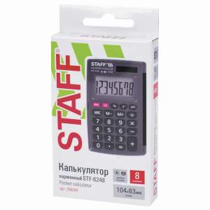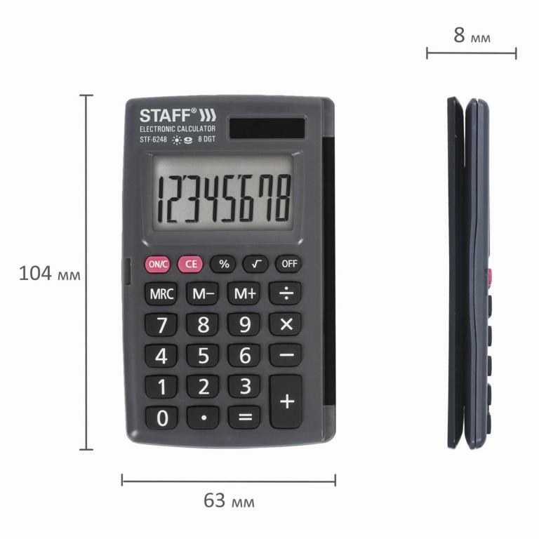 Компактный и надежный карманный калькулятор STAFF STF-6248 поможет выполнить базовые вычисления везде, где Вам понадобится. Калькулятор легко помещается в карман и удобно лежит в руке.