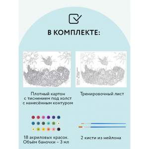 2. 18 акриловых красок на водной основе в пронумерованных баночках;