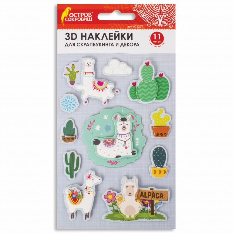 3D наклейки для скрапбукинга и декора ЛАМЫ - это универсальный декоративный материал, используемый в скрапбукинге и других видах творчества. В наборе содержится 11 ярких стикеров, состоящих из нескольких слоёв плотной бумаги. Благодаря многослойности наклейки имитируют объёмную картинку и помогут оригинально украсить любую поделку. Наклейки просты и удобны в использовании: аккуратно отделите выбранную наклейку от бумажной подложки и поместите в выбранное место. Наклейки будут надёжно держаться на бумаге, картоне, дереве и пластике.
