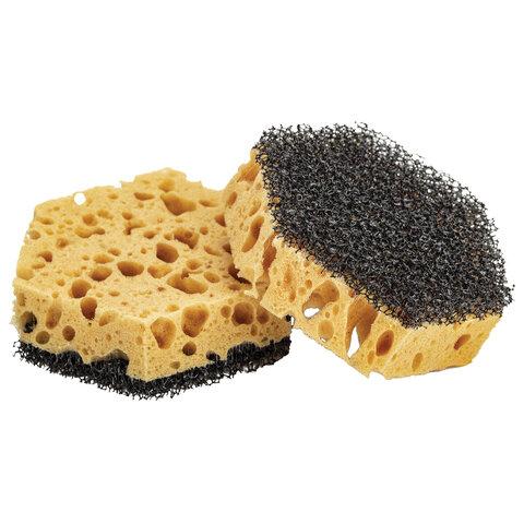 Мягкий слой из крупнопористого поролона деликатно моет, а абразивный - удаляет стойкие загрязнения. Крупнопористый поролон образует обильную пену при использовании моющих средств. Используются для чистки любых поверхностей, в том числе керамики и тефлона. Эргономичны за счет увеличенного размера 64х96х42 мм. Комплект: 2 штуки. Цвет: ассорти.