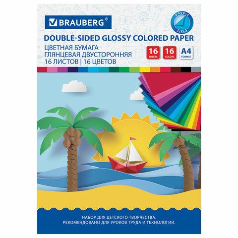 Набор мелованной (глянцевой) двусторонней цветной бумаги плотностью 55 г/