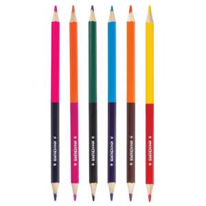 Набор состоит из 6 карандашей и 12 цветов: розовый-синий, оранжевый-пурпурный, зеленый-черный, голубой-фиолетовый, канареечный-коричневый, желтый-красный. Шестигранная форма сечения корпуса позволяет не скатываться карандашу с поверхности стола во время занятий рисованием. Они изготовлены из высокосортной белой древесины ценных пород и имеют лакированный корпус. Качество древесины и исполнения гарантируют легкую заточку. Грифель из натуральных материалов и пигментов диаметром 3 мм обладает повышенной прочностью. Все карандаши заточены с двух сторон и поставляются в картонной упаковке с европодвесом.