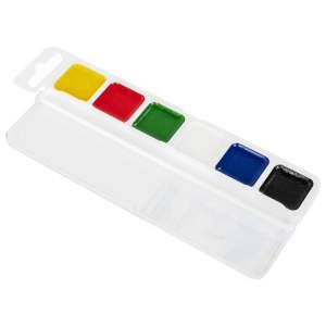 6 ярких насыщенных цветов отлично смешиваются между собой и позволяют создать множество оттенков, обеспечивают однородное окрашивание. Краски быстро высыхают и не портятся со временем. Нетоксичны и безопасны для детей. Выпускаются в пластиковом пенале с европодвесом, прозрачной крышкой, квадратной формой кювет и отделением для кисточки. Упаковка обладает компактными размерами и легким весом.