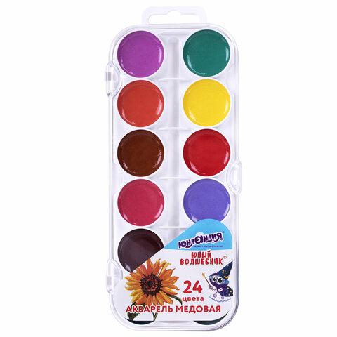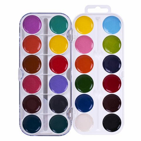 24 ярких насыщенных цвета отлично смешиваются между собой и позволяют создать множество оттенков, обеспечивают однородное окрашивание. Краски быстро высыхают и не портятся со временем. Безопасны для детей, нетоксичны. Выпускаются в пластиковом пенале с прозрачной крышкой, круглой формой кювет и отделением для кисточки. Упаковка обладает компактными размерами и легким весом.