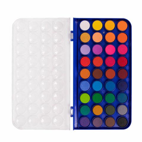 В наборе 36 насыщенных цветов, которые отлично смешиваются, позволяя создавать множество оттенков. Краски легко наносятся, образуя интенсивное яркое покрытие даже при нанесении в один слой. Обеспечивают однородное окрашивание, быстро высыхают и не портятся со временем. Краски безопасны для детей, нетоксичны. Выпускаются в пластиковом пенале с европодвесом, прозрачной крышкой, круглой формой кювет и отделением для кисточки. Съемную пластиковую крышку можно использовать в качестве палитры для смешивания красок.