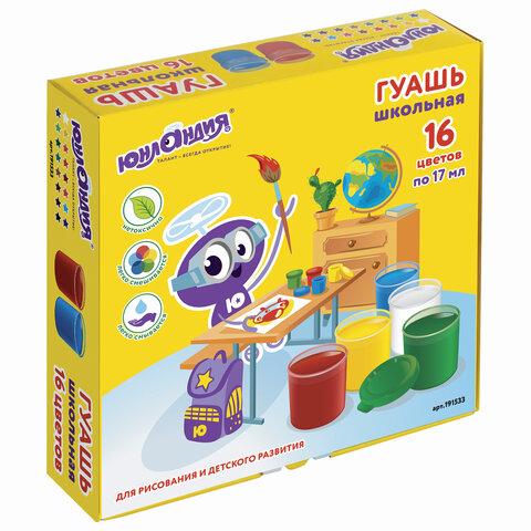 Школьная гуашь высшего качества ЮНЛАНДИЯ поможет создать юным художникам первые шедевры. Идеальна для нанесения на бумагу, картон, дерево, стекло, керамику.