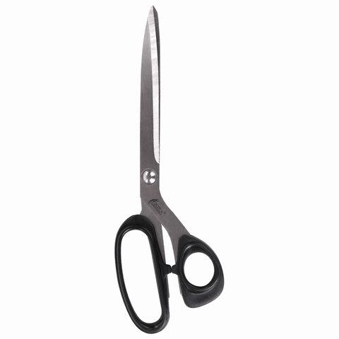 Эргономичные пластиковые ручки черного цвета удобны в использовании. Лезвия выполнены из нержавеющей стали. Общая длина ножниц составляет 250 мм. Поставляются в блистере с европодвесом.