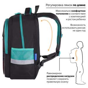 Удобная мягкая вентилируемая спинка с воздушными спонжевыми панелями разработана с учетом анатомических особенностей детей младшего и среднего школьного возраста. Рюкзак оснащен нагрудным ремешком, который снижает нагрузку на спину. В процессе эксплуатации равномерное распределение нагрузки позволит сохранить правильную осанку!