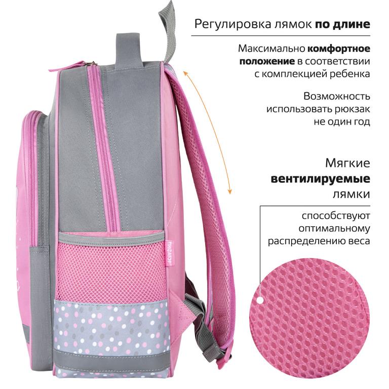 Рюкзаки ПИФАГОР серии «SCHOOL» - оптимальное качество по лучшей цене. Предназначен для учениц начальной школы, выполнен из прочного полиэстера. Уплотненная спинка, лямки с внутренней поверхностью из воздушного спонжа обеспечат комфорт при носке