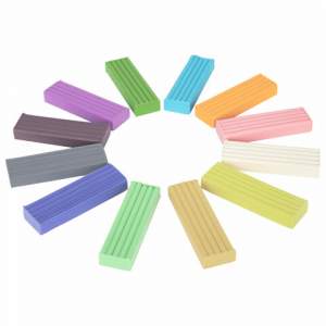 В составе набора 12 брусков по 15 г разных цветов: белый, светло-розовый, светло-сиреневый, голубой, охра, оливковый, светло-серый, зеленый арбуз, слива, ярко-оранжевый, банан, капучино.